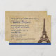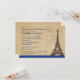 Commencez par une romantique douche à thème parisienne avec une invitation unique à ressembler à une carte postale d'une époque révolue. Le arrière - plan rappelle une vieille lettre avec une subtile gravure, une écriture cursive et des timbres visa et poste. La tour Eiffel domine sur un panneau bleu. Le arrière - plan papier est répété au verso pour mettre en évidence des informations supplémentaires pour vos invités. Disponible avec les produits correspondants.