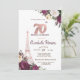 Parties scintillant tour Eiffel, fleurs bordeaux, confettis or sur invitation rose arrière - plan d'anniversaire or.