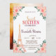 Parties scintillant Tour Eiffel, fleurs et confettis d'or sur l'arrière - plan rose or Sweet 16 anniversaire invitation fête.