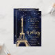 Un mariage à thème parisien moderne, chic et glamour avec une parties scintillant d'or dessinée à la main Tour Eiffel française avec parties scintillant d'or scintille sur une aquarelle bleu marine foncé. Parfait pour les mariages de destination européenne.