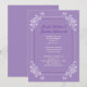 Faire-part de mariage après-cérémonie / après-mariage au lavande vintage avec des volutes blanches ornées et des accents violets. Ceux-ci sont parfaits si vous avez eu une cérémonie privée, mais que vous voulez que vos amis et votre famille partagent votre bonheur lors d'une fête ultérieure, ou vous pouvez les utiliser pour votre mariage à venir. Personnalisez avec vos propres informations. Si vous devez déplacer le texte ou modifier la taille, la police ou la couleur, cliquez sur Personnaliser. Je peux mettre ce design sur d'autres produits de mariage - RSVP, cartes de table, cartes de placement, etc. Contactez-moi simplement via ma boutique - Délai de traitement des commandes : 24-36 heures.