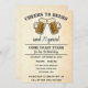 Des invitations de fête d'anniversaire 21 ans amusantes et festives célèbrent l'âge légal pour se laisser aller à une bière ! Le design présente deux chopes de bière avec de la bière mousseuse à l'intérieur. Les chopes de bière sont ensemble dans une position de toast. Au-dessus et en dessous des chopes de bière se trouve un texte en police noire qui dit "Trinquons aux bières" et "21 ans !". Il y a un texte personnalisable où vous pouvez ajouter le nom de l'invité d'honneur de l'anniversaire et tous les détails de la fête du vingt-et-unième anniversaire. Le fond de l'invitation est un fond jaune ayant l'air vieilli. Cette invitation de fête d'anniversaire 21 ans est parfaite pour célébrer un anniversaire marquant.