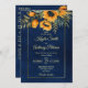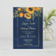bleu marine mariage de automne avec tournesol jaune verdure bleu marine arrière - plan cadre or modèle fleuri faire-part de mariage tout en un avec le code RSVP QR à l'arrière.