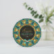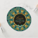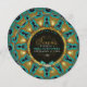Invitations de forme ronde (cercle) unique nuptiale. Pour le type bohème, tribal, terreux et de style alternatif marié-à-être type de gal. Vert, turquoise, orange et jaune avec combo bleu foncé. Ce modèle de mandala géométrique a été créé à l'origine à partir de mes photos de plumes de paon. Le modèle et le texte géométriques infusés d'énergie se trouvent de part et d'autre de cette invitation à la douche nuptiale. ・ ・ Conception personnalisée spéciale faite avec amour par Webgrrl.art