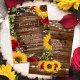 Invitation Tournesol en bois Brown rustique et Mariage en ros