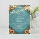 Design élégant en cuir à outils turquoise avec une bordure de tournesol brillante et un centre de défilement en relief, et avec une série de lumières brillantes. Parfait pour les invitations, accessoires et fournitures de fête à thème rustique, occidental ou boho.