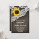 Sunflower Grange Wood et dentelle Wedding Invitations - dispose d'un arrière - plan en bois de grange avec dentelle en alencon imprimé et un design de tournesol floral pour s'adapter à votre événement à thème pays, vintage ou rustique.