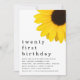 Tournesol jaune gras Vingt et unième fête d'anniversaire. Célébrez la femelle 21ème avec ce magnifique tournesol géant remplit le haut à droite et l'en-tête est grand en bas en minuscule élégant avec les détails au fond. Personnalisez facilement le texte à vos propres détails.