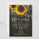 Soirée rustique de soixantième anniversaire de pays modèle d'invitation élégante sur bois de grange brun foncé arrière - plan avec de grands bouquets de tournesols jaune or, cordes de lumières scintillantes et un script de typographie faux or. ++++++++++++++++++++++ Facile à personnaliser avec vos détails ! Vous pouvez choisir de le customiser en changeant davantage les polices et les couleurs de l'écriture. +++++++++++++++++ L'invitation est adaptée pour jardin extérieur / jardin rustique brunch champêtre / barbecue été ou automne fêtes d'anniversaire