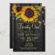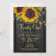 Russie pays vingt et premier anniversaire soirée élégante invitation modèle sur bois de grange brun foncé arrière - plan avec de grands bouquets de tournesols jaune or, cordes de lumières scintillantes et un faux script de typographie or. ++++++++++++++++++++++ Facile à personnaliser avec vos détails ! Vous pouvez choisir de le customiser en changeant davantage les polices et les couleurs de l'écriture. +++++++++++++++++ L'invitation est adaptée pour jardin extérieur / jardin rustique brunch champêtre / barbecue été ou automne fêtes d'anniversaire