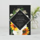 Mettez vos invités dans l'ambiance avec cette invitation de mariage tournesol et rose blanche en noir