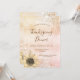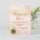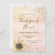 Une chute d'or Thanksgiving Diner invitation. Un arrière - plan rose d'or et de rose vif à l'aspect faux métallique décoré de faux or et d'argent de poussière de parties scintillant et d'un tournesol rustique. Personnalisez et ajoutez les détails de votre fête.