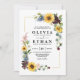 Invitation Tournesol Roses Bourgogne Bleu Rustique