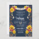 western charro beau thème rustique pour quinceanera ou fête d'anniversaire. Ce design présente des tournesols jaune vif et de riches roses rouges, sur un arrière - plan bleu marine personnalisable et des accents occidentaux rustiques. Entièrement personnalisable pour tout type d'événement !