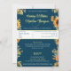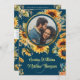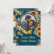 Une élégante explosion de tournesols sur un fond bleu marine crée un spectacle époustouflant et accrocheur pour vos détails de mariage. Caractérisé par une délicate calligraphie script et un espace pour personnaliser avec votre photo pour un toucher supplémentaire spécial. Parfait pour les mariages de printemps, d'été et d'automne !