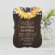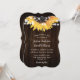 Faire-part de mariage de tournesol rustique avec une seule tournesol contre un arrière - plan de grange. Un design de carte parfait pour inviter vos invités à votre campagne rustique ou à votre mariage de grange inspiré des tournesols.