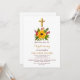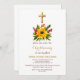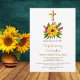 Aquarelle de tournesol rustique, florale, jaune neutre, or et blanc Invitations Christening. Croix d'or, minimaliste, invitations Boho Baptême.