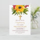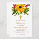 Aquarelle de tournesol rustique, florale, jaune neutre, or et blanc invitations Baptême. Croix d'or, minimaliste, invitations Boho Baptême.