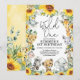 Célébrez votre petit sauvageon qui fête son premier anniversaire avec cette invitation d'anniversaire fantaisiste sur le thème du safari jungle. Le design présente un groupe d'animaux de safari adorables, des tournesols vibrants et une verdure rustique.