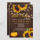 Petite citrouille en route Fête de bébé invitation rustique de campagne sur un bois de grange brun foncé avec des guirlandes de lumières scintillantes avec des tournesols jaunes orange peints à la main et une citrouille. ++++++++ Convient pour les fêtes de bébé ou les soirées de révélation du sexe de l'enfant en été ou en automne fille ou garçon.