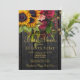 Rustique pays nuptiale douche élégante invitation modèle sur bois de grange brun foncé arrière - plan avec de grands tournesols d'or jaune et bouquets rose bordeaux rouge, cordes de lumières scintillantes, et un script de typographie en faux or. ++++++++++++++++++++++ Facile à personnaliser avec vos détails ! Vous pouvez choisir de le customiser en changeant davantage les polices et les couleurs de l'écriture. ++++++++++++++++ L'invitation est adaptée pour jardin extérieur / jardin rustique pays brunch vintage / barbecue fêtes de mariée.