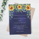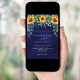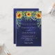 Un fond de couleur bleu marine orné de tournesols et d'eucalyptus. La couleur bleue est inégale. Personnalisez et ajoutez vos noms et les détails de la fête.