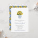 Tournesols intemporels dans un vase en forme de jarre en grès pour ce design d'invitation. J'ai configuré le modèle pour une fête de fiançailles, mais tous les champs de texte sont personnalisables selon vos besoins.