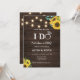Faire part de réception de mariage BBQ. Une façon décontractée d'inviter vos proches à votre réception de mariage après une fugue ou une cérémonie privée. Avec un fond en bois de grange, des tournesols et des guirlandes lumineuses.