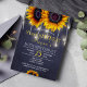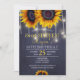 Fleurs élégantes été automne automne sweet sixteen imprimable / 16e anniversaire invitation modèle sur minuit sombre tableau bleu marine avec bouquets de tournesols jaunes dorés et cordes de lumières scintillantes. Convient pour le printemps été d'automne jardin extérieur jardin rustique ferme de campagne chic fête d'anniversaire. Téléchargement et impression numériques disponibles.