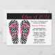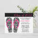 Famille Invitation et amis à une soirée Graduation avec cette invitation avec les tongs rayés rose et noir Zebra. Customisez avec les détails de votre Fête de diplômes.