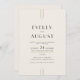 Ce faire-part de mariage Art déco raffiné à double face de la collection Everly présente une typographie noire minimaliste et des accents de ligne or sur un arrière - plan crème douce. Il est parfait pour un look élégant et intemporel. Économisez du papier en incluant un code QR pour votre invité afin d'afficher les détails, RSVP ou les deux.
