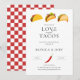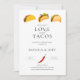 Nous vous présentons notre invitation pour le dîner de répétition "Tout ce dont vous avez besoin, c'est d'amour et de tacos", le moyen idéal pour donner le ton à une célébration amusante et festive avant votre grand jour ! Cette invitation est sûre de ravir vos invités et de les enthousiasmer pour une soirée d'amour et de délicieux tacos.