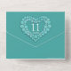 Cartes de réponse détachables pour la fête du 11e anniversaire de mariage thème Turquoise. Bel effet de perle de turquoise en forme de cœur imprimé sur des invitations pour le onzième anniversaire de mariage, personnalisez avec vos propres détails de fête d'anniversaire de mariage, une photo du couple heureux, incitez les invités à utiliser la carte de réponse en y apposant un timbre ou en la renvoyant remplie via votre e-mail, idéal pour la simplicité des réponses. Le 11e anniversaire est associé à la pierre précieuse turquoise et le cœur symbolise l'amour. Graphismes et conception de Sarah Trett pour www.mylittleeden.com