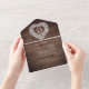 Fête du 13ème anniversaire de mariage sur le thème rustique campagne et invitations RSVP détachables pouvant être scellées de sorte qu'aucune enveloppe n'est requise. Un bel effet de dentelle en forme de cœur avec des graphiques imprimés, invitations d'anniversaire de mariage, personnalisez avec les détails de votre fête d'anniversaire de mariage. Facilitez la tâche pour vous et vos invités en envoyant vos invitations scellées simplement manuscrites, vos invités pourront répondre avec la partie RSVP détachable et en y collant un timbre pour une réponse rapide et facile. Le trentième anniversaire de mariage est associé à la dentelle et le cœur symbolise l'amour. D'autres articles assortis sont disponibles. Graphiques et conception par Sarah Trett pour www.mylittleeden.com et www.mylittleedenweddings.com