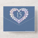 Fête du 15ème anniversaire de mariage avec photo et cartons-réponse détachables pouvant être scellés sans nécessité d'enveloppe. De belles invitations d'anniversaire de mariage à graphisme imprimé en forme de cœur avec effet de cristal de gemme bleue, personnalisables avec les détails de votre fête d'anniversaire de mariage, et une photo du couple heureux. Cela vous permet, ainsi qu'à vos invités, d'envoyer facilement vos invitations sans nécessiter d'enveloppe : il suffit de les sceller et d'écrire l'adresse à la main. Vos invités pourront répondre en utilisant le carton-réponse détachable et en y apposant un timbre pour une réponse rapide et facile. Le quinzième anniversaire de mariage est associé au cristal et le cœur symbolise l'amour. D'autres articles assortis sont disponibles. Graphisme et conception de Sarah Trett pour www.mylittleeden.com