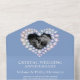 Faire-part de 3 ans de mariage avec photo et carton-réponse détachable pouvant être scellés sans enveloppe. De magnifiques faire-part de 3 ans de mariage avec un effet de cristal de gemme bleu clair en forme de cœur, personnalisez-les avec les détails de votre fête de mariage, une photo du couple heureux. Facilitez la tâche à vos invités en leur envoyant vos invitations scellées sans enveloppe, il leur suffira d'écrire dessus, de détacher le carton-réponse et d'y apposer un timbre pour une réponse rapide et facile. Le 15ème anniversaire de mariage est associé au cristal et le cœur symbolise l'amour. D'autres articles assortis sont disponibles. Graphisme et design par Sarah Trett pour www.mylittleeden.com et www.mylittleedenweddings.com
