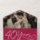 Cette invitation à une fête pour les 40 ans de mariage comporte un RSVP détachable afin qu'elle puisse être scellée, donc aucune enveloppe n'est requise. Le texte de style graphique en rouge rubis foncé indique 40 ans et est souligné avec des invitations de mariage pour 40 ans avec un cœur. Personnalisez avec vos propres détails de fête d'anniversaire de mariage et les options de repas de réponse ainsi qu'une photo du couple célébrant l'anniversaire. Facilitez la tâche à vos invités et à vous-même pour l'envoi, car aucune enveloppe n'est requise : il suffit d'écrire à la main sur vos invitations scellées et vos invités peuvent répondre avec le RSVP détachable pour des réponses rapides et faciles concernant les repas. Idéal pour un événement d'anniversaire de quarante ans avec un repas formel. Le quarantième anniversaire de mariage est associé à la couleur rouge rubis et le cœur symbolise l'amour. D