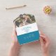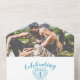 Faire la fête pour les 4 ans d'anniversaire de mariage avec un carton d'invitation avec photo et RSVP détachable. Les invitations peuvent être scellées, donc aucune enveloppe n'est requise. Un dessin au trait de topaze bleue en forme de cœur orne les invitations d'anniversaire de mariage personnalisées avec les détails de votre fête, une photo du couple heureux à l'intérieur du rabat. Cela simplifie les choses pour vous et vos invités, car aucune enveloppe n'est nécessaire ; il suffit d'écrire à la main sur les invitations scellées et vos invités peuvent répondre avec le RSVP détachable, en y apposant un timbre pour une réponse encore plus rapide et facile qui inclut les demandes de musique et les besoins alimentaires. Le quatrième anniversaire de mariage est associé à la pierre précieuse topaze bleue et le cœur symbolise l'amour. D'autres articles assortis sont disponibles. Dessin et conception graphique de Sarah Trett pour www.mylittleeden.com et www.mylittle