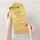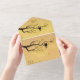 Célébrez un cinquantième anniversaire de mariage avec cette charmante invitation dorée sur le thème des tourtereaux, accompagnée d'une carte-réponse détachable pour faciliter l'ensemble du processus d'invitation. Ce design représente un arbre aux feuilles dorées avec des tourtereaux et un fond doré. Création originale vectorielle de Night Owl's Menagerie, 2021.