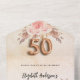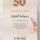 Un décor rustique doré rose et dégradé rose vif, décoré de fleurs rose vif et d'herbe de pampas. Personnalisez et ajoutez votre nom, ainsi que les détails. Lettres de couleur noire. Le numéro 50 est écrit avec une police de style ballons d'or rose.