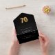 Un arrière - plan noir, décoré d'un grand nombre de 70 en faux or. Personnalisez et ajoutez le nom, les détails du parti, la date RSVP, l'adresse et le nom de retour.