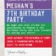 Couleurs vives et design audacieux dans Stripes. 7ème anniversaire invitation all-in-one carte. Invitations à la fête du 7e anniversaire.