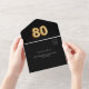 Un arrière - plan noir, décoré d'un grand nombre de 80 en faux or. Personnalisez et ajoutez le nom, les détails du parti, la date RSVP, l'adresse et le nom de retour.