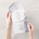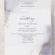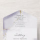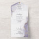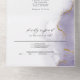 Violet poussiéreux et or, aquarelle douce marbrée avec des reflets dorés clinquants - chaque section surlignée d'un voile blanc transparent, le tout sur un carton d'invitation de mariage avec un RSVP détachable pré-adressé pour le choix du menu, pour que vos invités puissent facilement le renvoyer par courrier - Modèle facile à personnaliser.