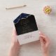 Agate Geode Black, Navy Blue and Gold Foil Mariage Spring ou Summer Wedding Invitations - comprend un script moderne et élégant pour la célébration spéciale du mariage.