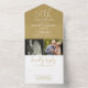 Tout en un carton d'invitation pour le 50e anniversaire de mariage doré avec 2 photos spéciales et une typographie élégante sur fond or. L'invitation comprend une carte RSVP perforée qui peut être adressée individuellement ou laissée en blanc pour que vous puissiez écrire à la main les coordonnées de vos invités et les initiales d'un monogramme chic dans une guirlande florale sur fond or. Conçu par Thisisnotme©