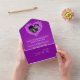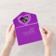 Cette invitation à une fête pour le 6ème anniversaire de mariage dispose d'un espace pour la photo de votre couple et d'un RSVP détachable pour qu'il puisse être scellé, donc aucune enveloppe n'est requise. De belles pierres précieuses d'améthyste violette en forme de cœur imprimées sur des invitations de mariage pour anniversaire de mariage, personnalisez avec les détails de votre propre fête d'anniversaire de mariage, une photo du couple heureux. Facilitez les choses pour vous et vos invités en envoyant sans enveloppe, il suffit d'écrire sur vos invitations scellées et vos invités pourront répondre avec le RSVP détachable et apposer un timbre pour des réponses rapides et faciles des invités. Le sixième anniversaire de mariage est associé à la pierre précieuse améthyste et le cœur symbolise l'amour. D'autres articles assortis sont disponibles. Graphismes et conception de
