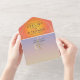 Choisissez cet élégant coucher de soleil tropical sur le design de la plage avec faux feuille d'or palmiers faire-part de mariage, pour votre mariage de destination tropicale. Avec une élégante esperluette en feuille d'or et un script délicat, cette faire-part de mariage tout-en-un est parfaite pour votre mariage. L'invitation comprend une carte de déchirure RSVP avec un code QR et l'adresse du site web pour RSVP en ligne. La carte peut également être envoyée à l'adresse postale du couple.