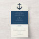 Invitation Tout En Un Ancre nautique Bleu Mariage côtier moderne