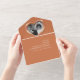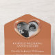 Invitation pour une fête d'anniversaire de mariage de cuivre avec un porte-photo, RSVP détachable, et sans enveloppe nécessaire. Bel effet de cuivre liquide en forme de cœur imprimé sur des cartons d'invitation pour les 7 ans d'anniversaire de mariage, personnalisez avec les détails de votre fête d'anniversaire de mariage, une photo du couple heureux. Le septième anniversaire de mariage est traditionnellement associé au cuivre et le cœur symbolise l'amour. D'autres articles assortis sont disponibles. Graphismes et conception de Sarah Trett pour www.mylittleeden.com et www.mylittleedenweddings.com